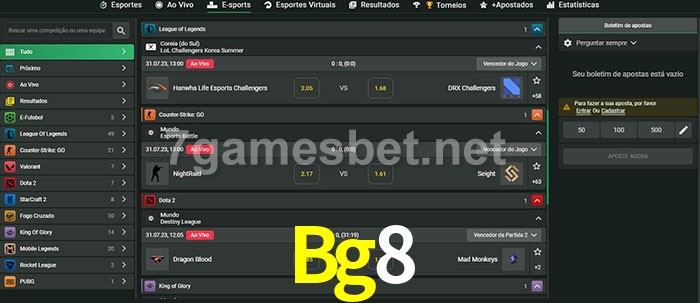 A aposta Bg8 oferece aos jogadores a experiência mais conveniente de apostas em eSports!
